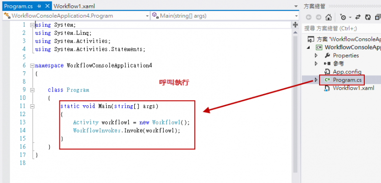 Workflow的特點呢!!就是應用程式邏輯可以視覺化的方式表現,讓應用程式的維護更容易進行。